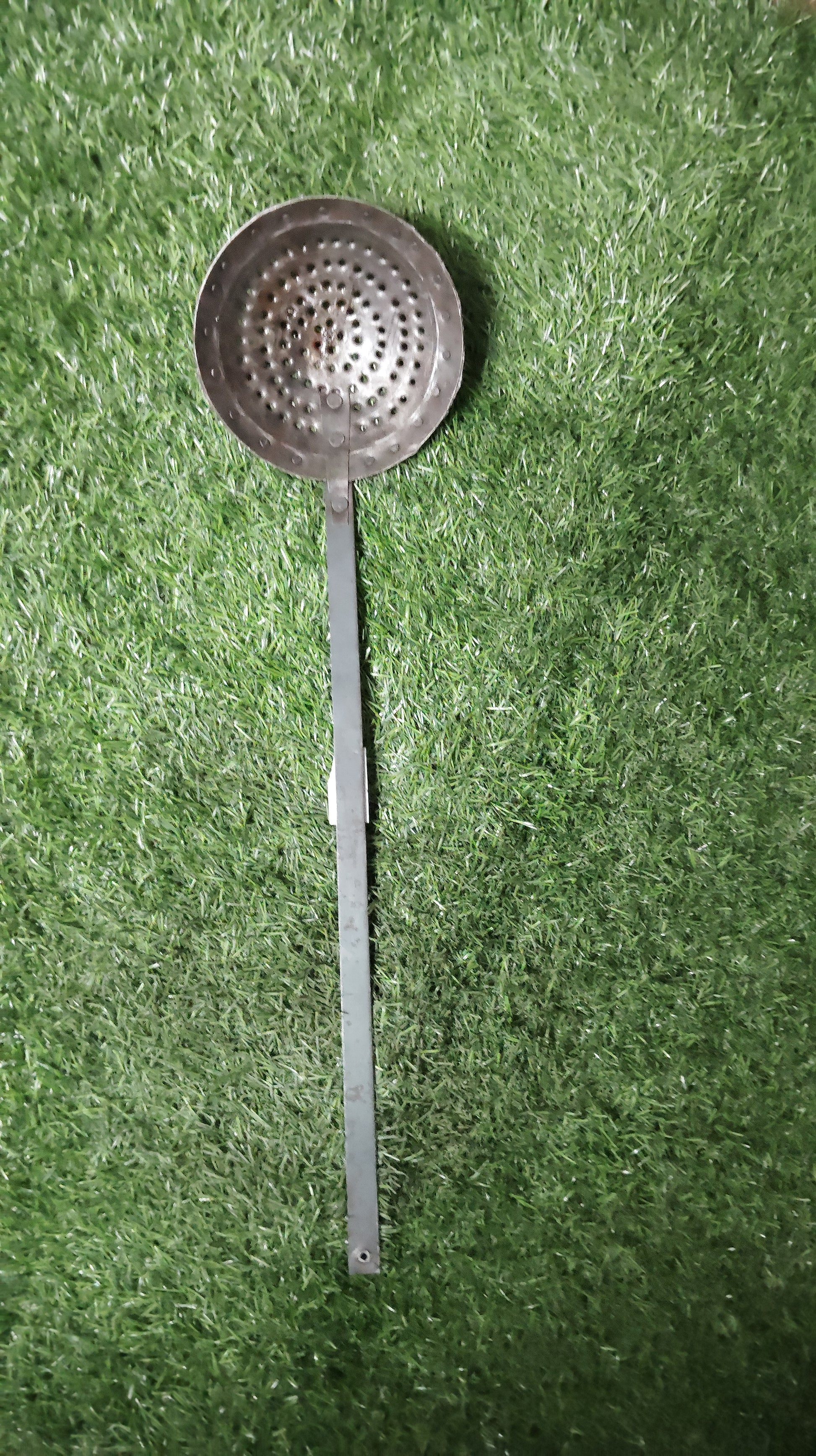 The Iron Zara (also known as Jalli Karandi) is a must-have tool for deep frying. With its perforated design, this ladle lets you safely lift, drain, and serve vadas, pooris, chips, or fried snacks without excess oil.